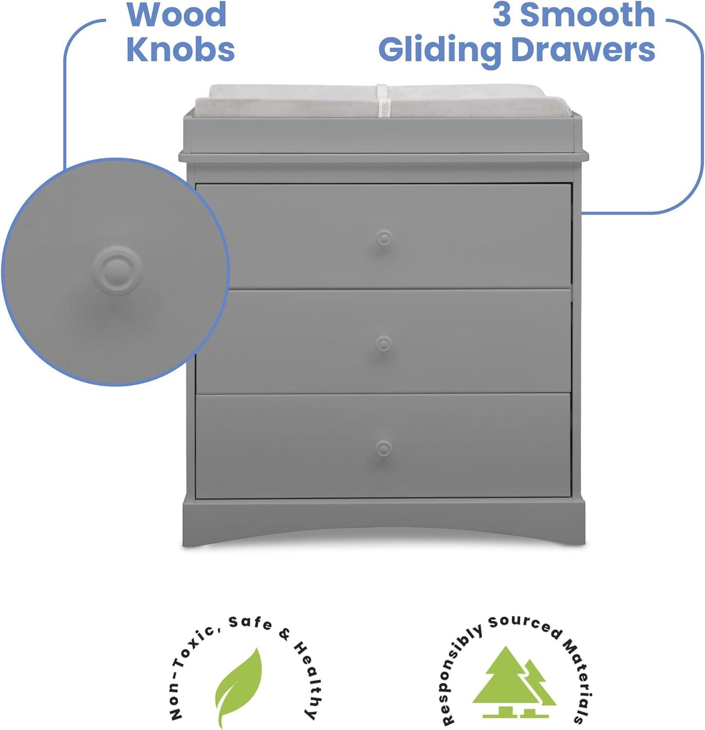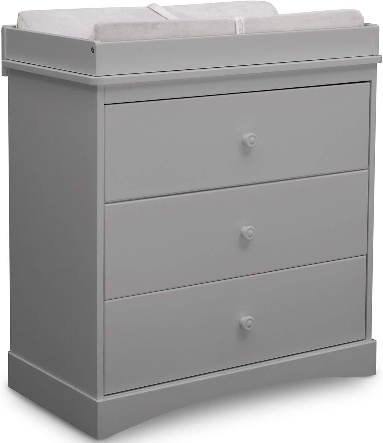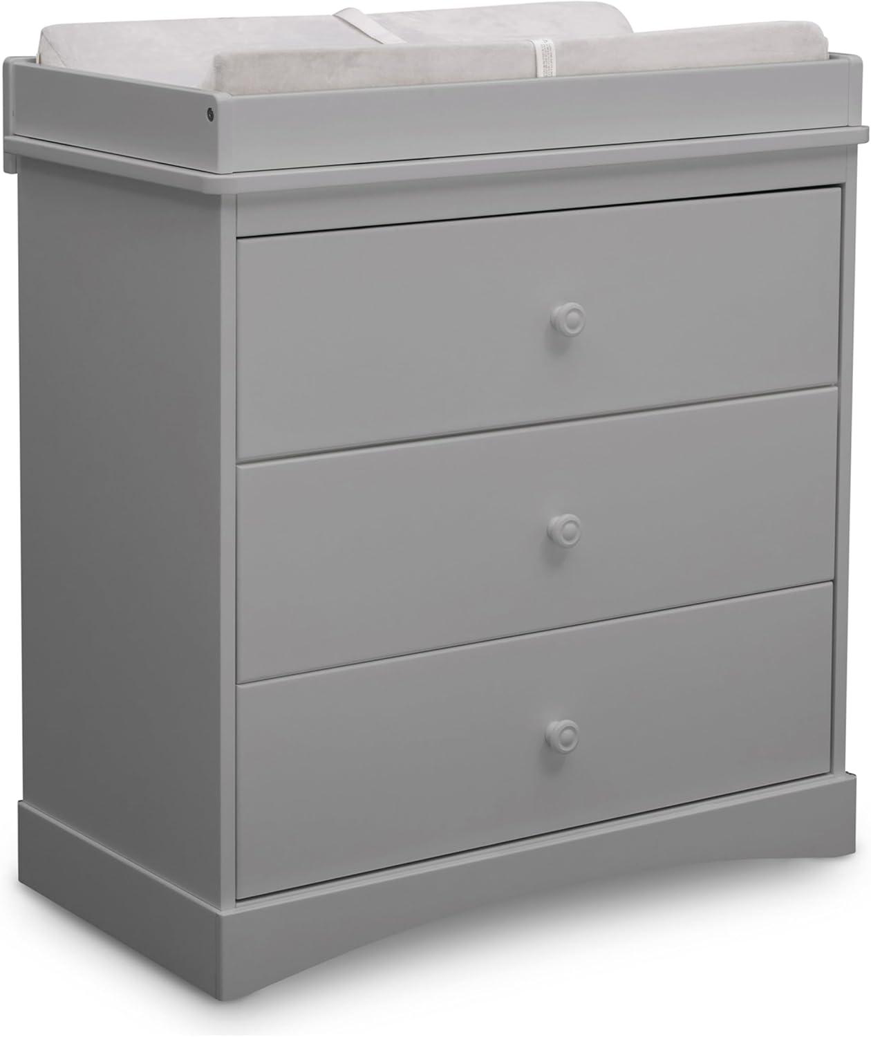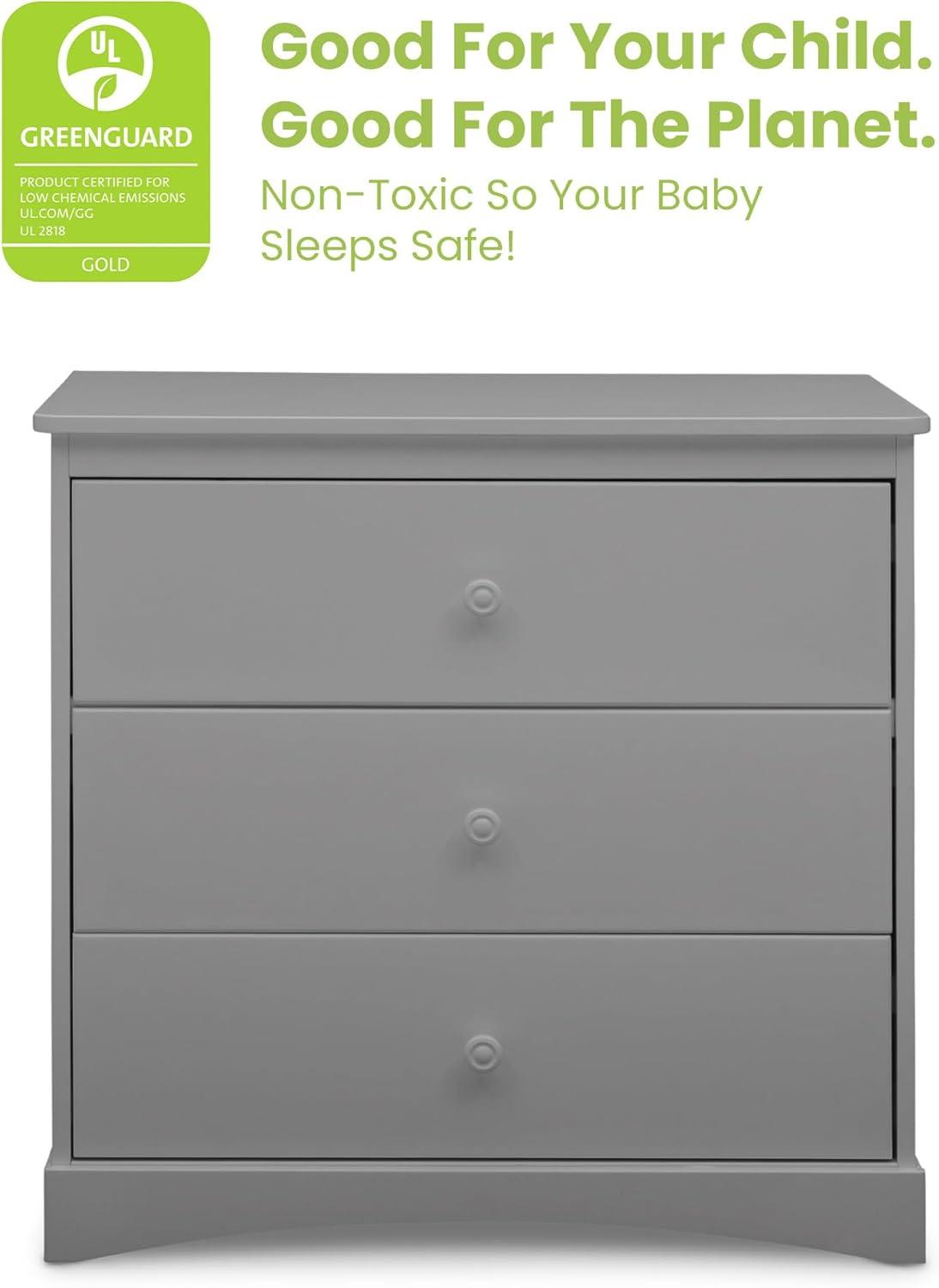Delta Children Sutton 3 Drawer Dresser with Changing Top and Interlocking Drawers - Greenguard Gold Certified, Bianca White(Grey)