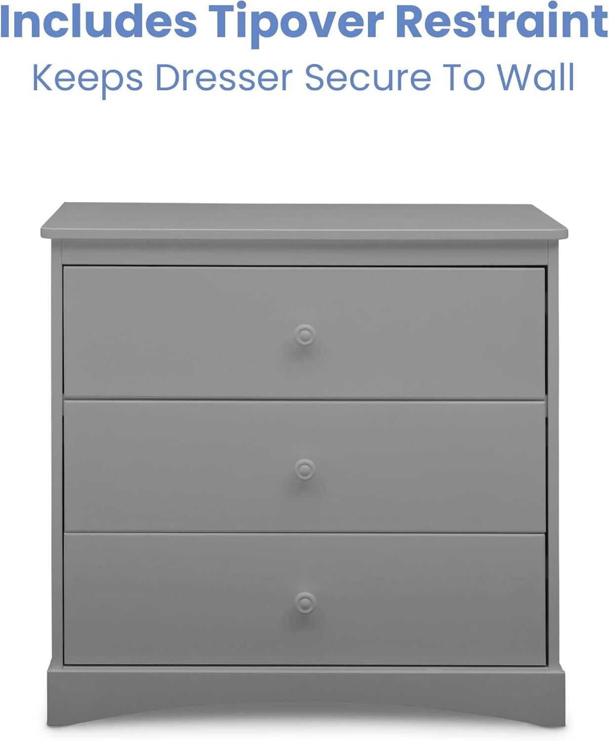 The Sutton 3 Drawer Dresser with Changing Top and Interlocking Drawers by Delta Children takes kids from tot to teen–keeping all their essentials organized in the process. Easily transitioning from changing station to dresser, it features a removable changing topper, three spacious drawers and a simple silhouette, ensuring it will never go out of style. For your child’s safety, this dresser is outfitted with an interlocking drawer system that limits the number of drawers that can be opened at one time. This dresser is tested to meet the current requirements of ASTM F2057, the mandatory CPSC safety standard that protects young children from furniture tip-over incidents. For your children’s safety, only purchase dressers that comply with this standard. For additional security, Delta strongly recommends that all dressers in your home be anchored; all Delta dressers include a wall anchor. To learn how to properly secure your dresser, please see the product assembly instructions or visit our website.