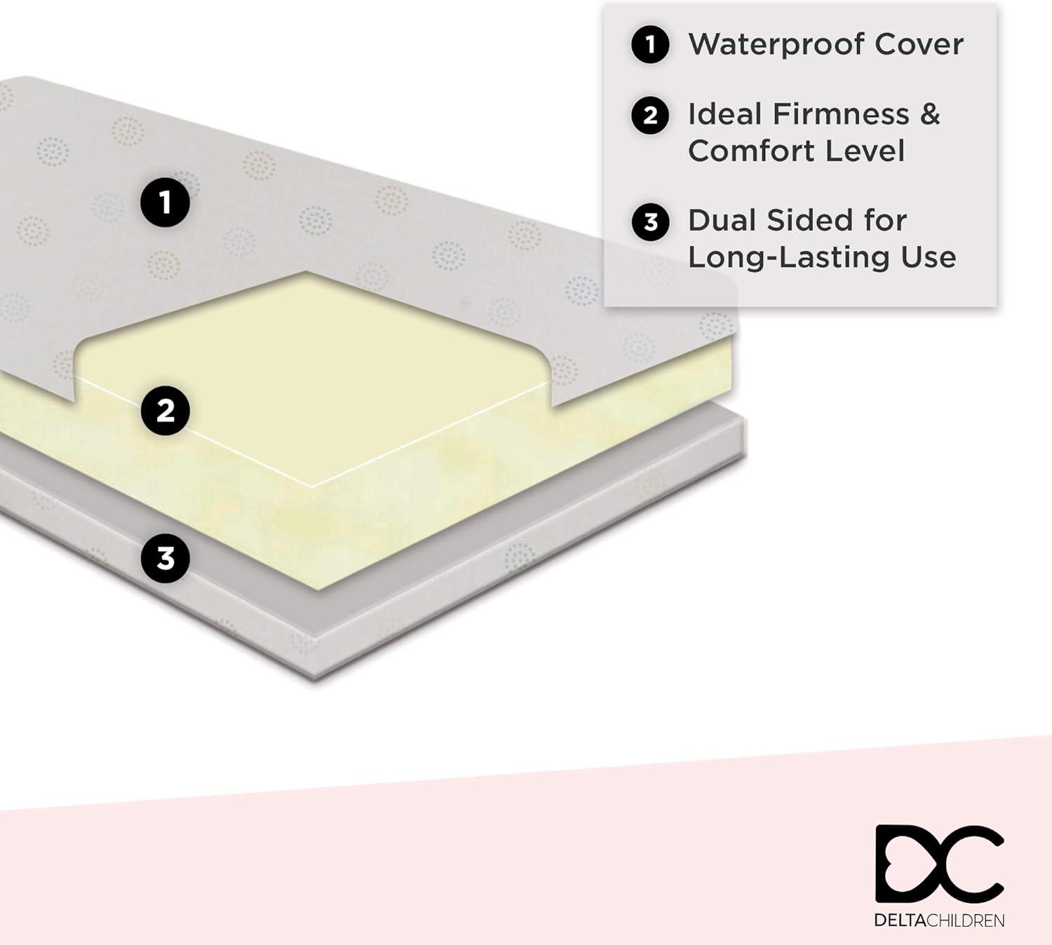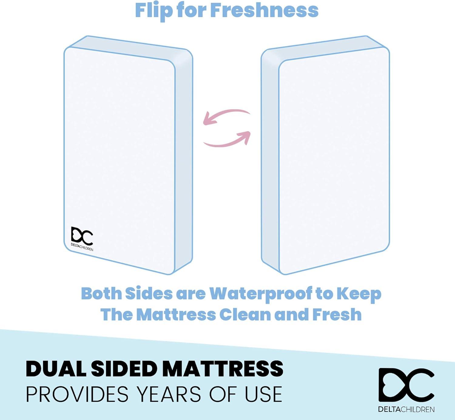 Delta Children Twinkle Stars Dual Sided – 6″ Premium Sustainably Sourced Fiber Core Crib and Toddler Mattress – Waterproof – GREENGUARD Gold Certified – 7 Year Warranty – Made in USA(Mattress Only)