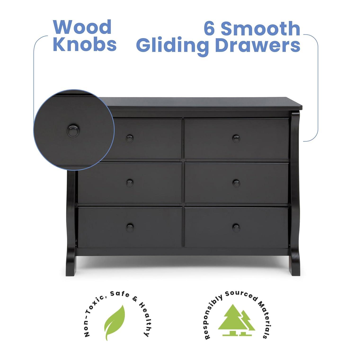 Delta Children Universal 6 Drawer Dresser with Interlocking Drawers – Greenguard Gold Certified, Grey(Black)