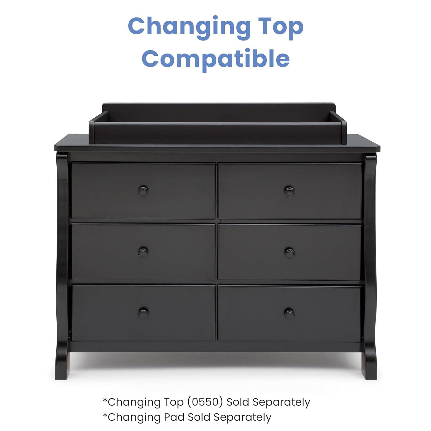 VERSATILE STORAGE: This dresser features 6 drawers for plenty of storage space | Sleigh style silhouette offers timeless style | To convert your dresser into a convenient changing table purchase the Delta Children #0550 Topper (sold separately)