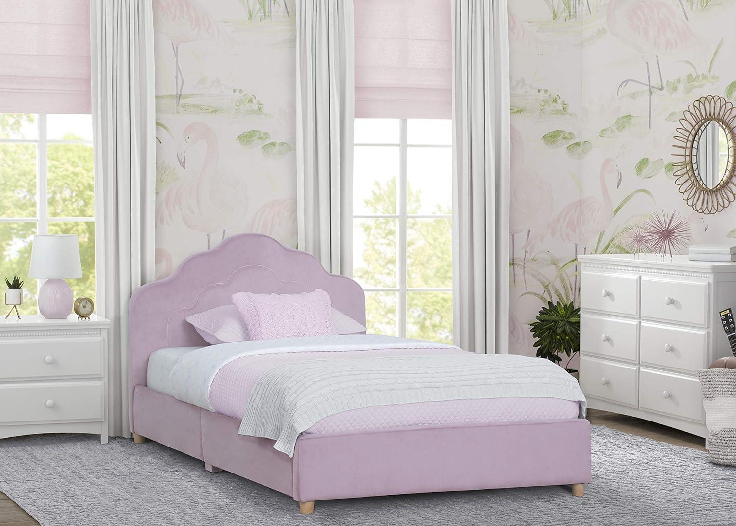 Inspire Sweet dreams with this Upholstered Twin Bed by Delta Children. Perfect for your little one's bedroom, This kids' Twin bed shows off velvety pink upholstery with a playful scalloped silhouette for a look both you and your child will love. Generous padding ensures long-lasting comfort and support while sitting up to read or watch TV. The bed's durable wood platform frame with slats eliminates the need for a box spring. Twin mattress sold separately. Delta Children was founded around the idea of making safe, high-quality children's furniture affordable for all families. They know there's nothing more important than safety when it comes to your child's space. That's why all Delta Children products are built with long-lasting materials to ensure they stand up to years of jumping and playing. Plus, they are rigorously tested to meet or exceed all industry safety standards.