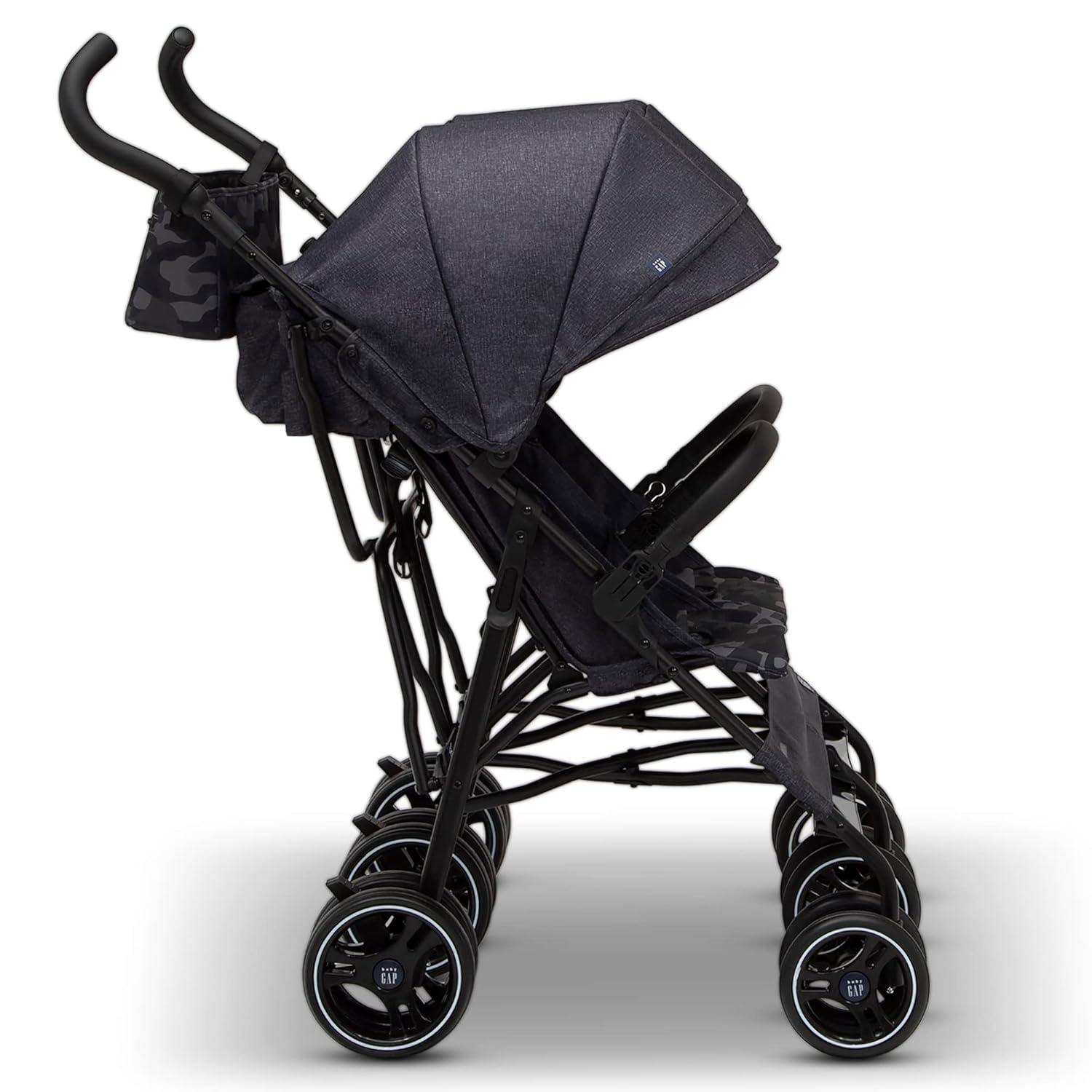UNIQUELY GAP BABY: Easily recognized Baby Gap logos and iconic Brannan Bear icons create an elevated look | Each seat has 3 recline positions | Ergonomic leatherette handlebars | 2 oversized canopies with extendable sun visors