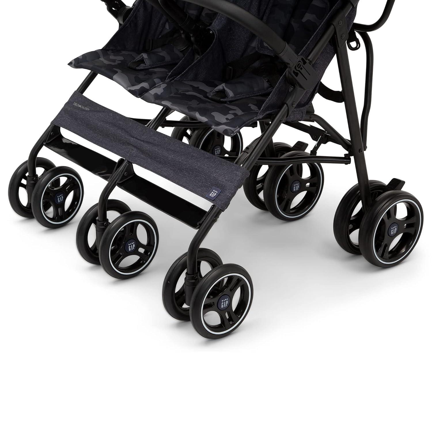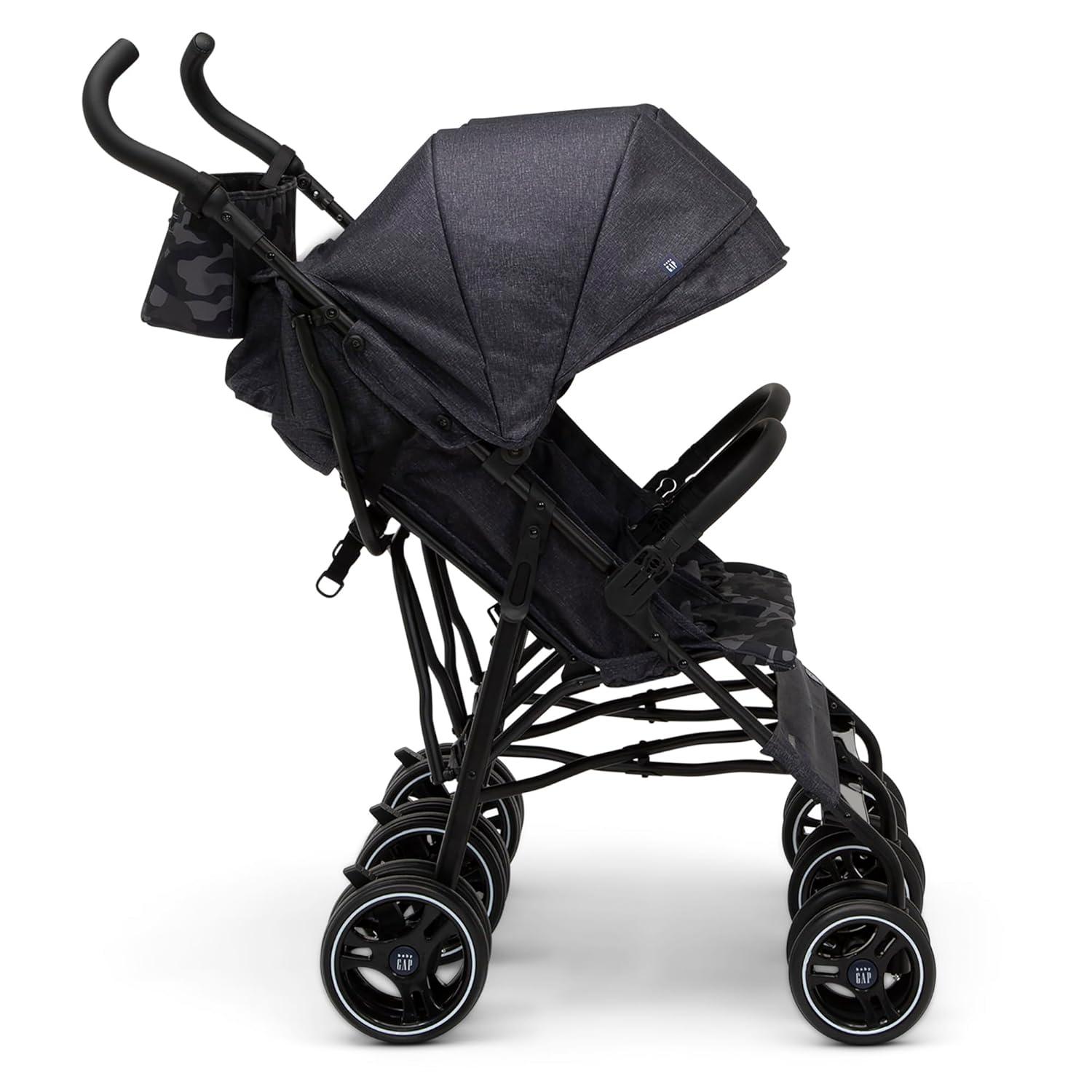 imageGAP babyGap Classic SidebySide Double Stroller  Lightweight Double Stroller with Recline Extendable Sun Visors ampamp Compact Fold  Made with Sustainable Materials Grey StripesBlack Camo