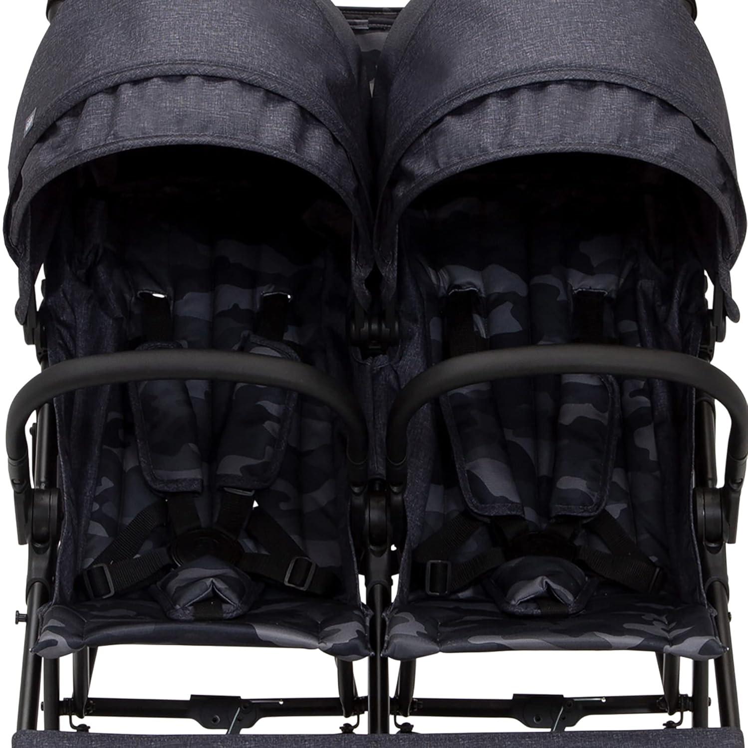 GAP babyGap Classic Side-by-Side Double Stroller – Lightweight Double Stroller with Recline, Extendable Sun Visors & Compact Fold – Made with Sustainable Materials, Grey Stripes(Black Camo)