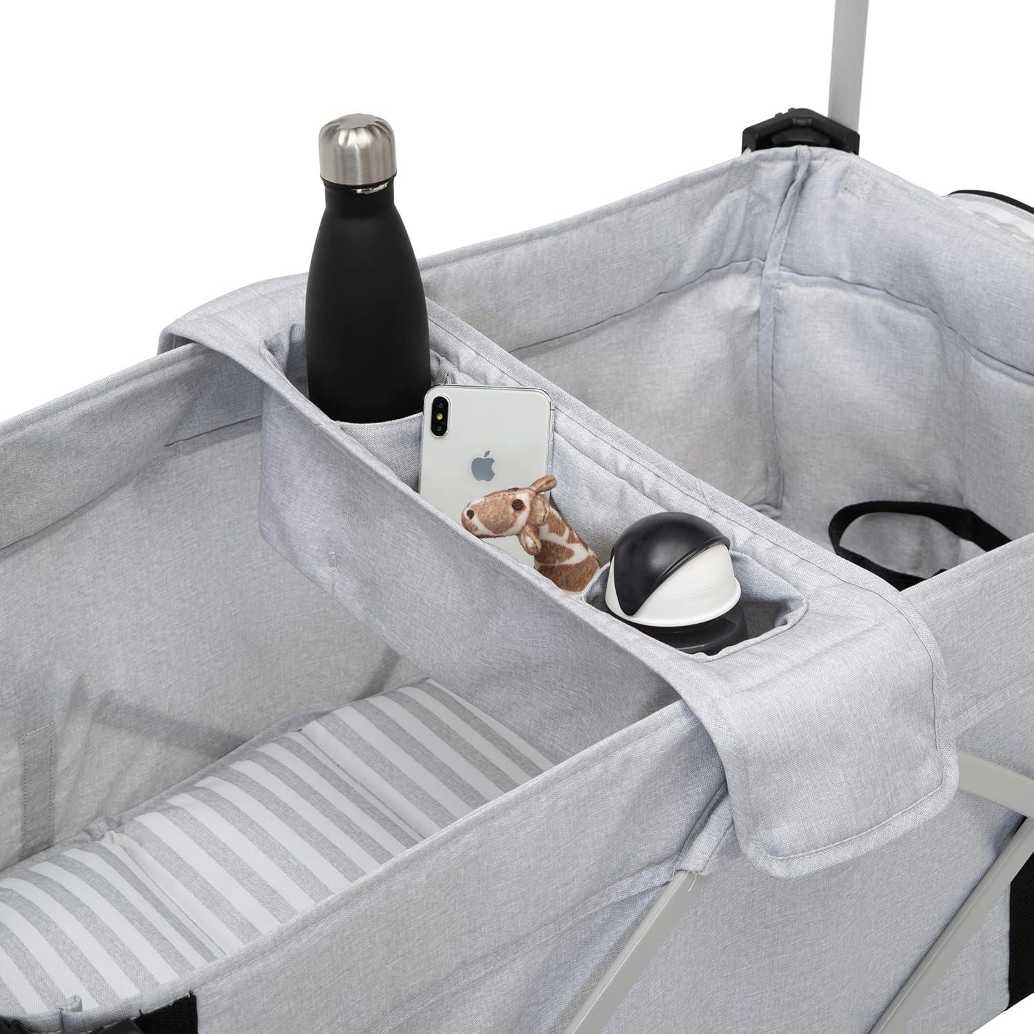 GAP babyGap Whisper Bedside Bassinet Sleeper with Breathable Mesh and Adjustable Heights – Lightweight Portable Crib – Made with Sustainable Materials, Grey Stripes(Oatmeal)