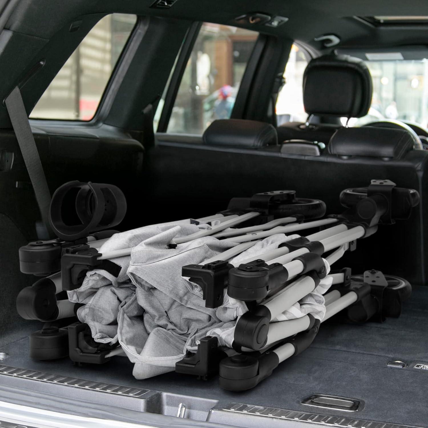 TONS OF STORAGE: Removable center console has 2 cup holders and storage pocket | Outside pockets and parent cup holder provides additional storage | Size: 24”W x 51.2″D x 46″H; Folded dim: 12.6”W x 16.9″D x 31.5″H | Weighs 38 lbs.