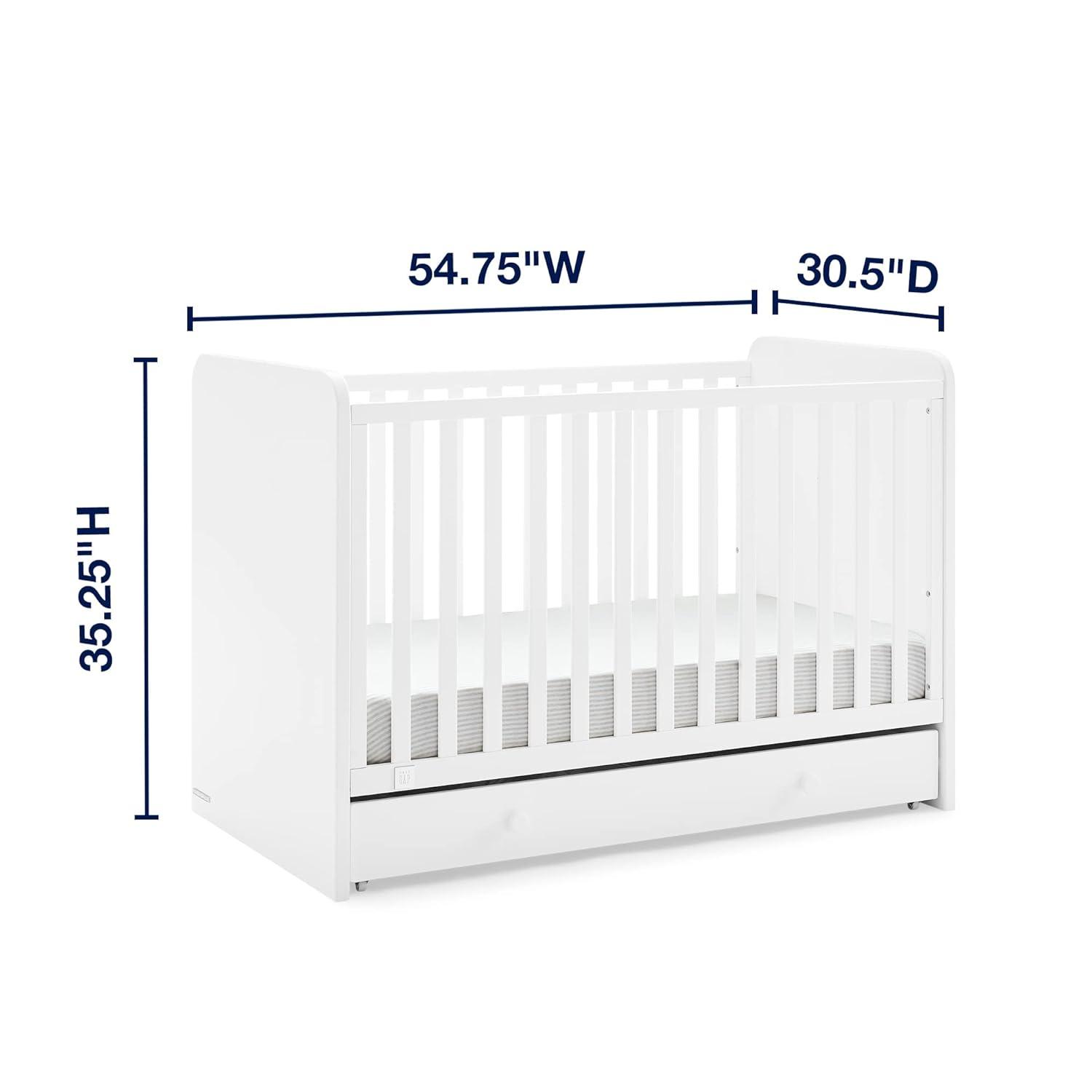 GAP babyGap Graham 4-in-1 Convertible Crib with Storage Drawer - Greenguard Gold Certified, Bianca White