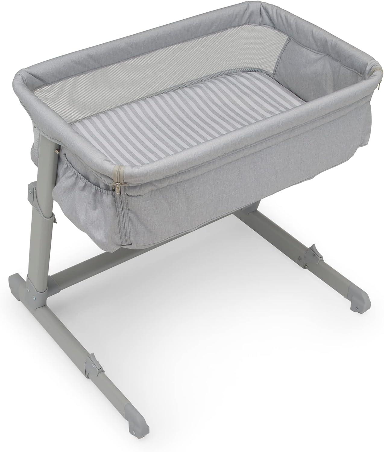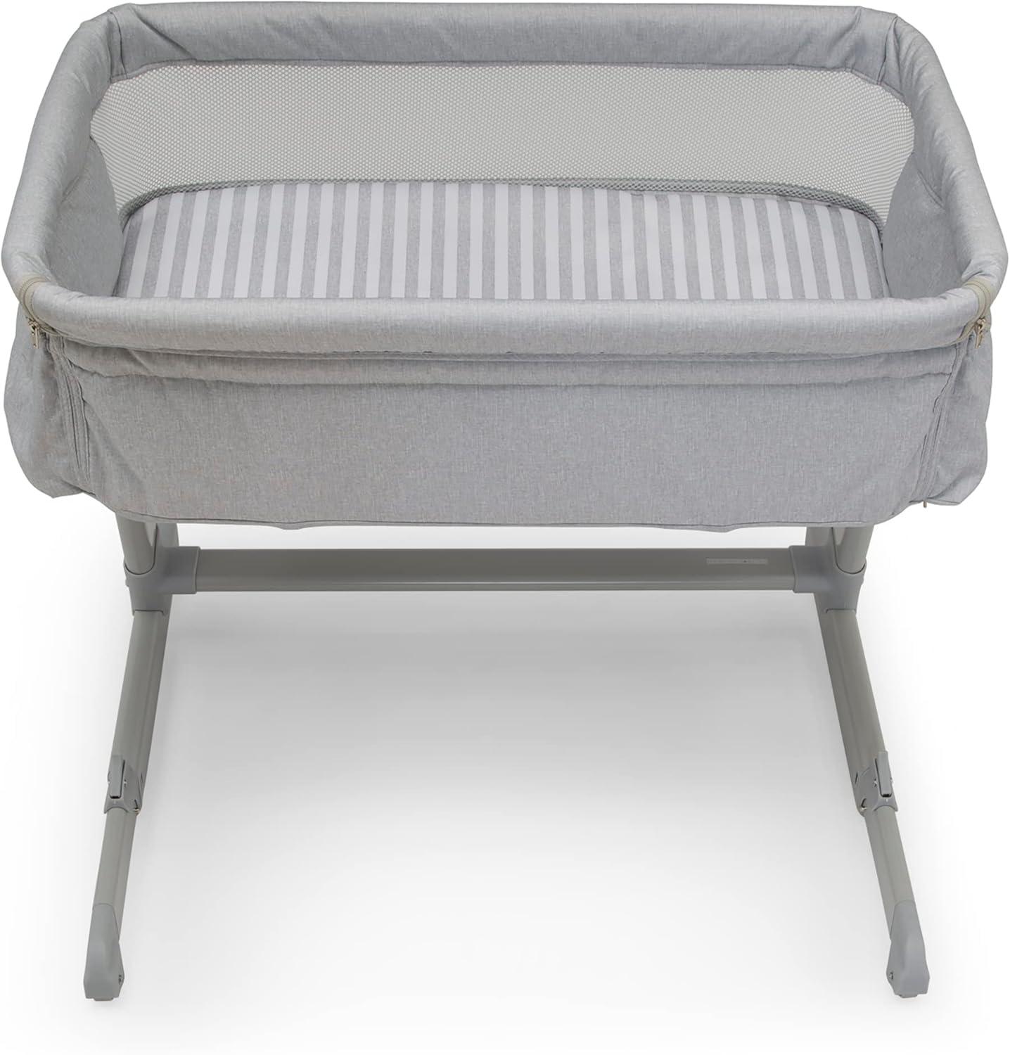 GAP babyGap Whisper Bedside Bassinet Sleeper with Breathable Mesh and Adjustable Heights - Lightweight Portable Crib - Made with Sustainable Materials, Grey Stripes(Grey Stripes)