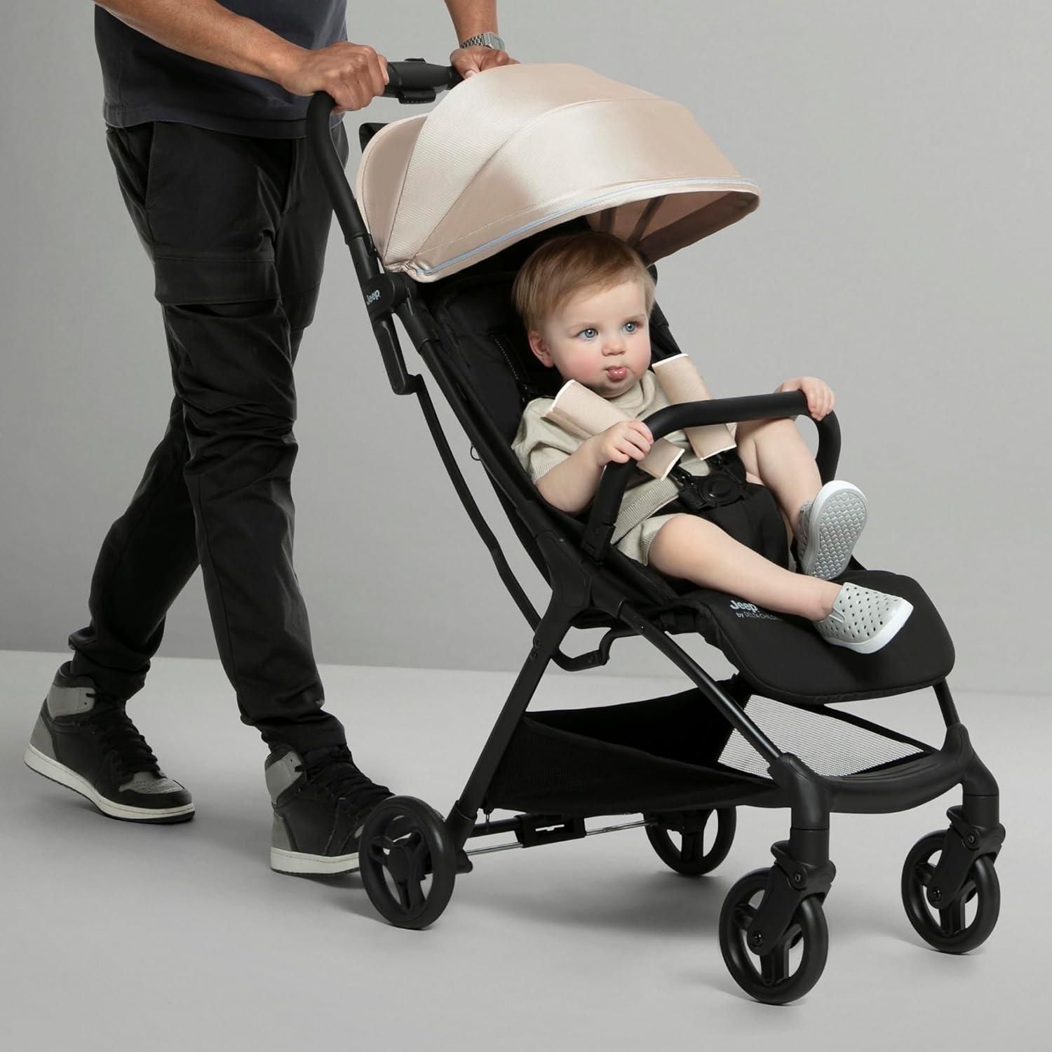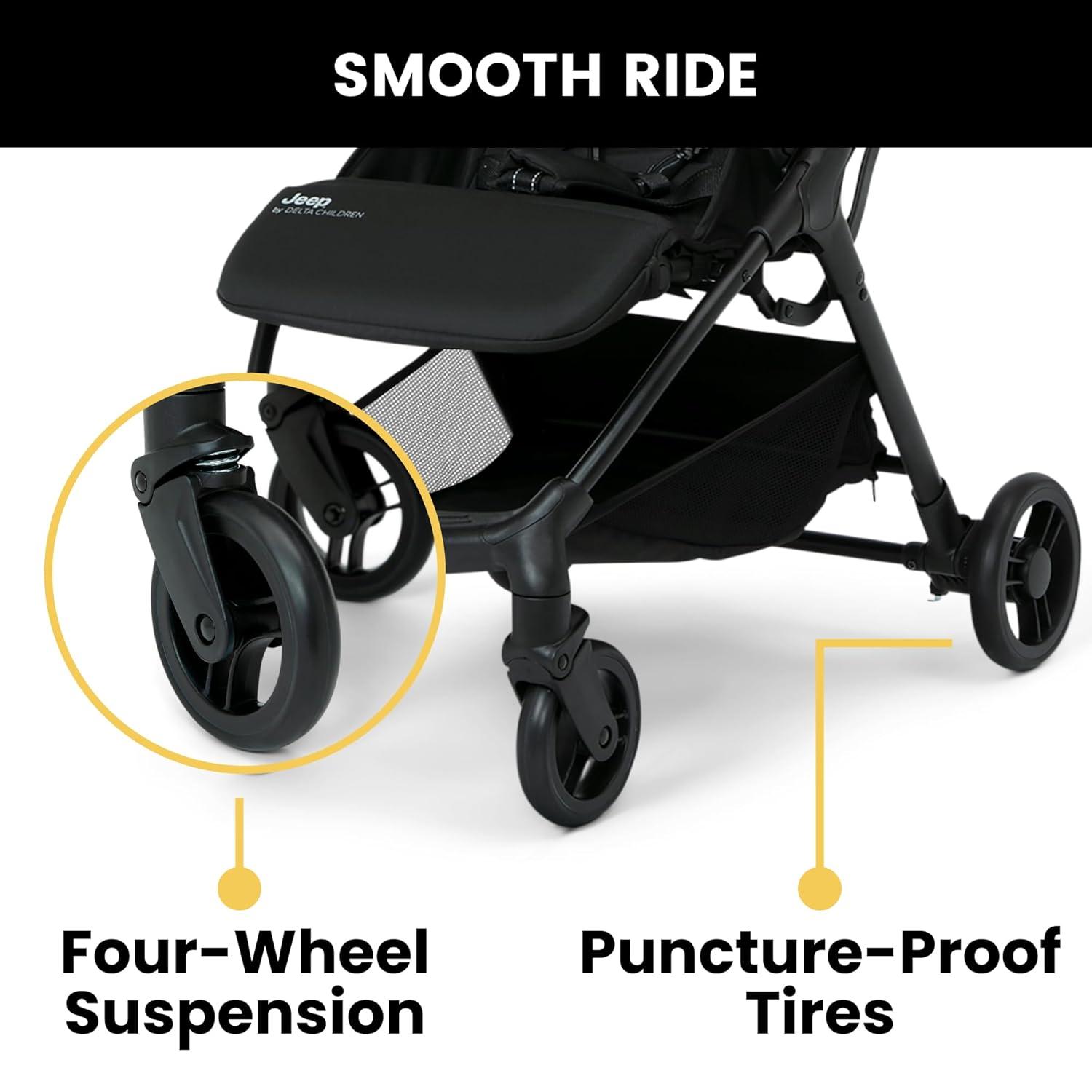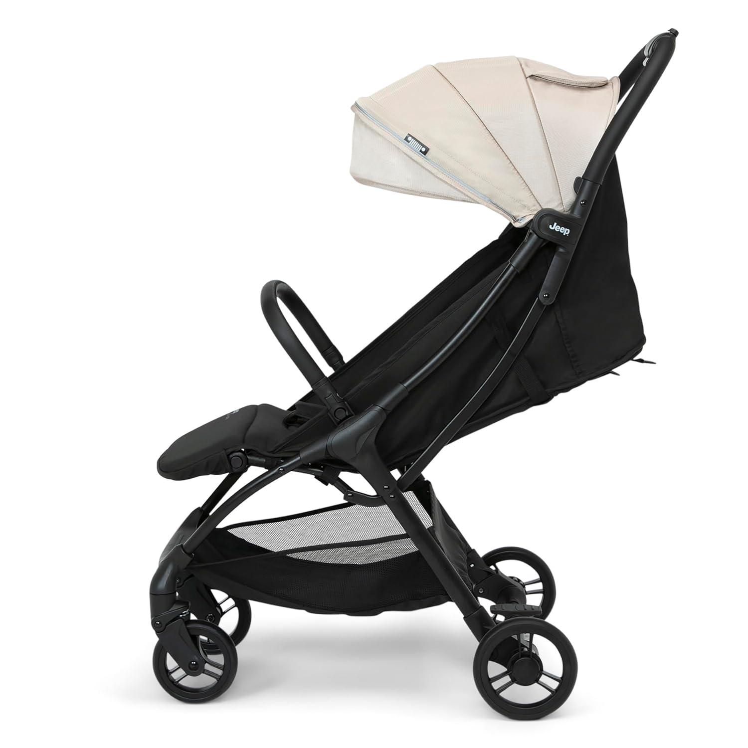 The Jeep Altitude Compact Travel Stroller by Delta Children is a small stroller that’s built for big adventures! The quick, one-handed auto fold allows you to open and close the stroller in a moment, even while you hold your baby, and the carry handle makes it easy to transport. Packed with tons of convenient features, this stroller has a multi-position recline and footrest, leatherette handle and child bar, spacious storage basket and a large canopy with a mesh peek-a-boo window. Lightweight and easy to maneuver, the stroller’s four-wheel suspension lets you glide over curbs, down ramps or along bumpy cobblestone, without waking your sleeping toddler. Plus, it’s GREENGUARD Gold Certified, which means it’s built to contribute to healthier air quality around baby. Get the Altitude Compact Travel Stroller by Delta Children and unlock a world of possibilities for you and your little one.