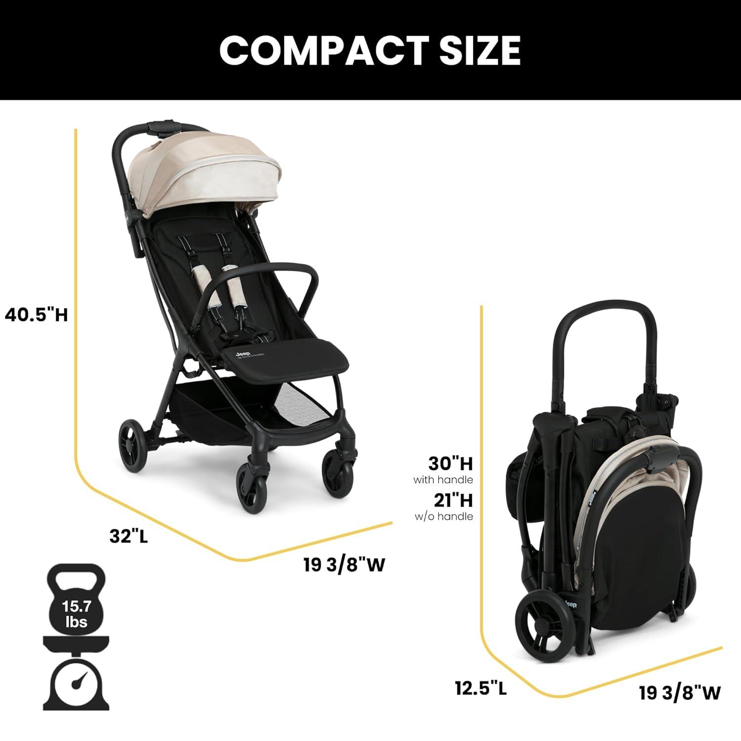 LIGHTWEIGHT & COMPACT: This stroller only weighs 15.7 lbs. | Stroller easily folds within seconds | Assembled: 33.5″L x 19″W x 40″H | Folded: 12.5″L x 19″W x 29″H