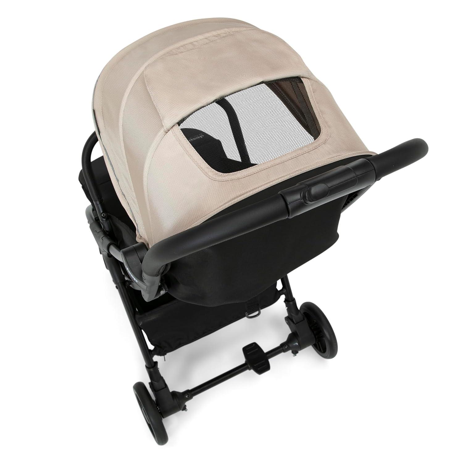 LUXURIOUS COMFORT: Extendable canopy with breezy mesh peek-a-boo window gives you a clear view of your child | Multi-position recline and footrest | Leatherette parent and child bar | Spacious storage basket provides plenty of storage