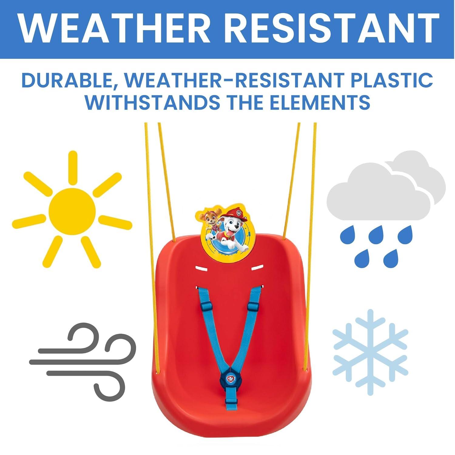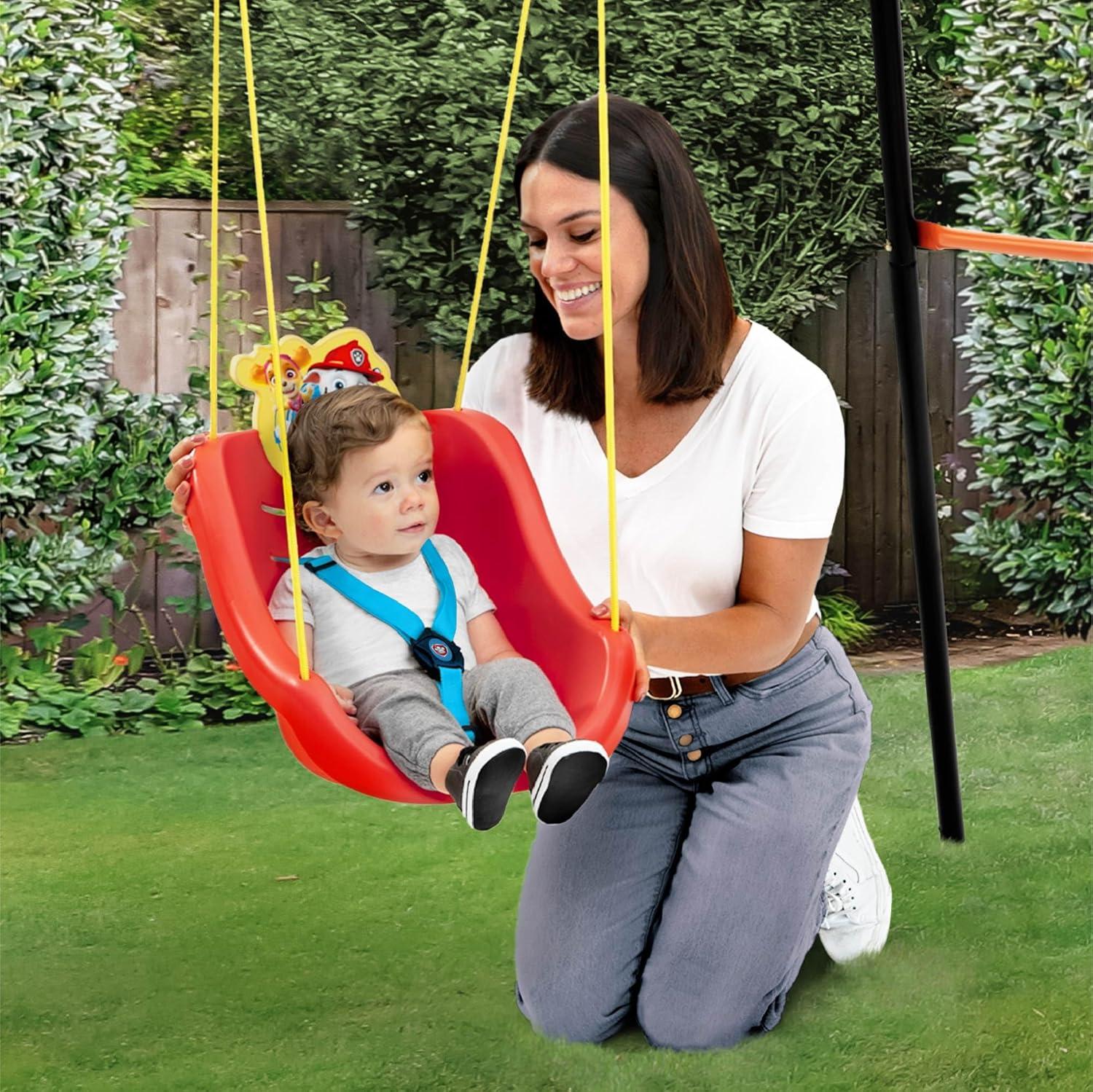 FOR PAW PATROL FANS: Colorful graphics of Marshall and Skye on the top make this a must-have swing for PAW Patrol fans