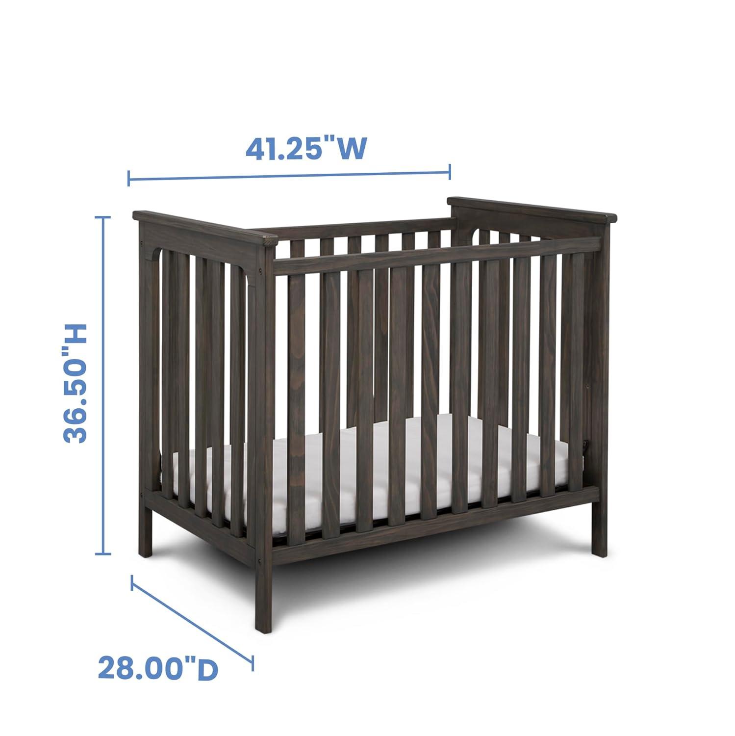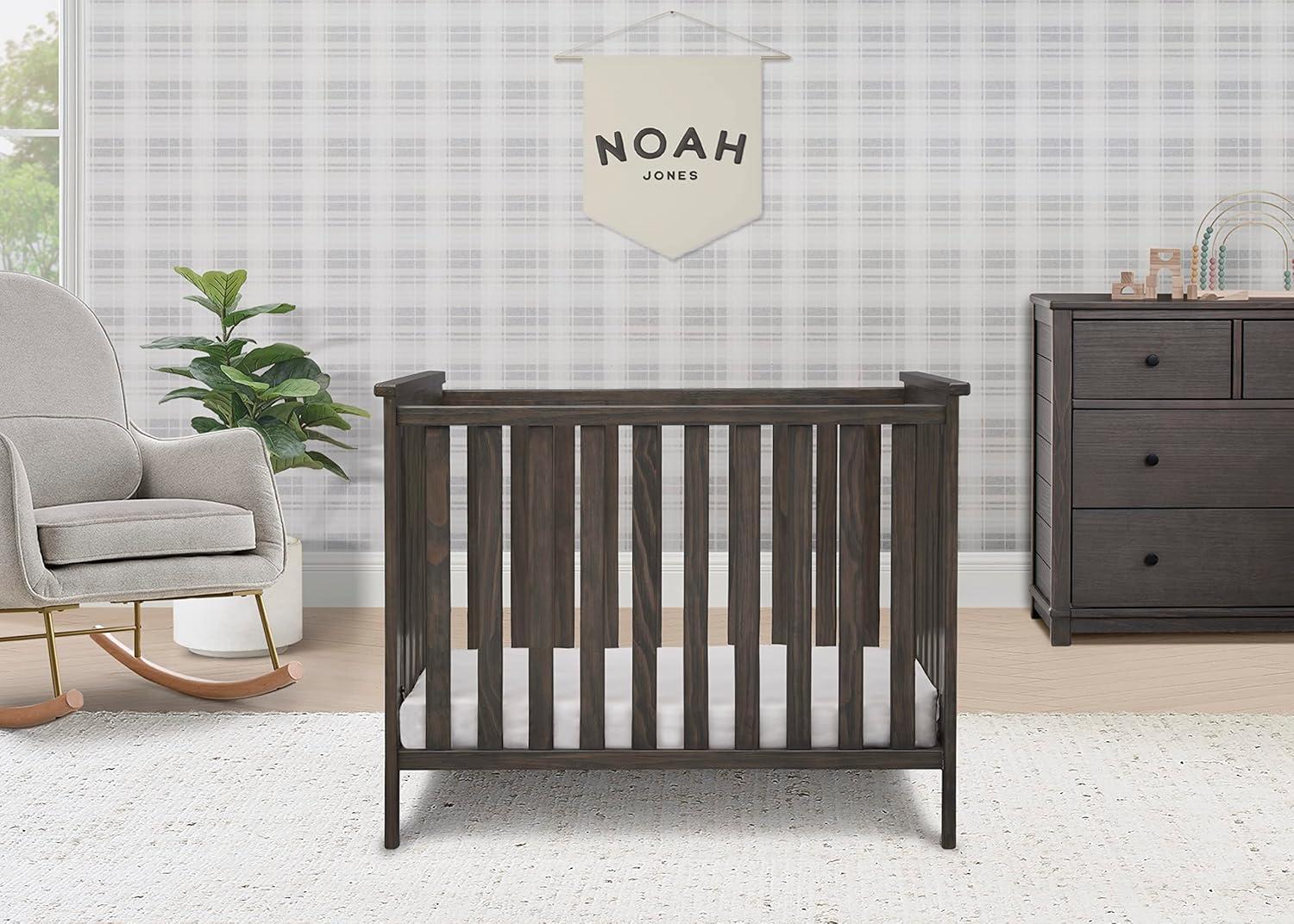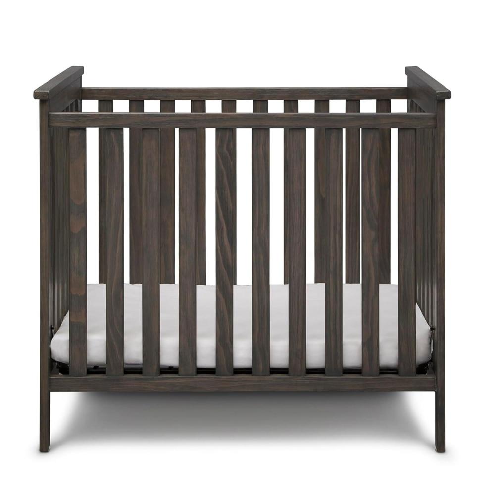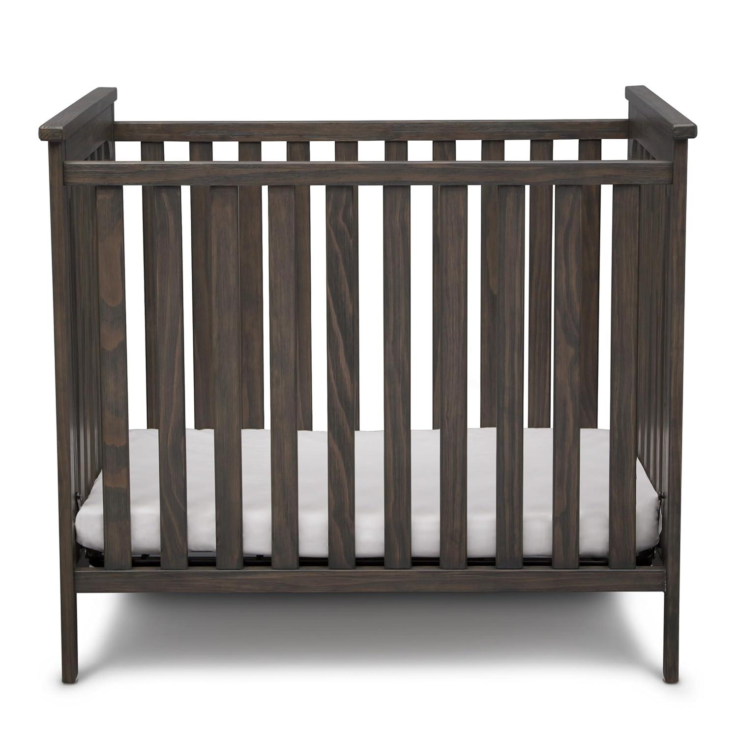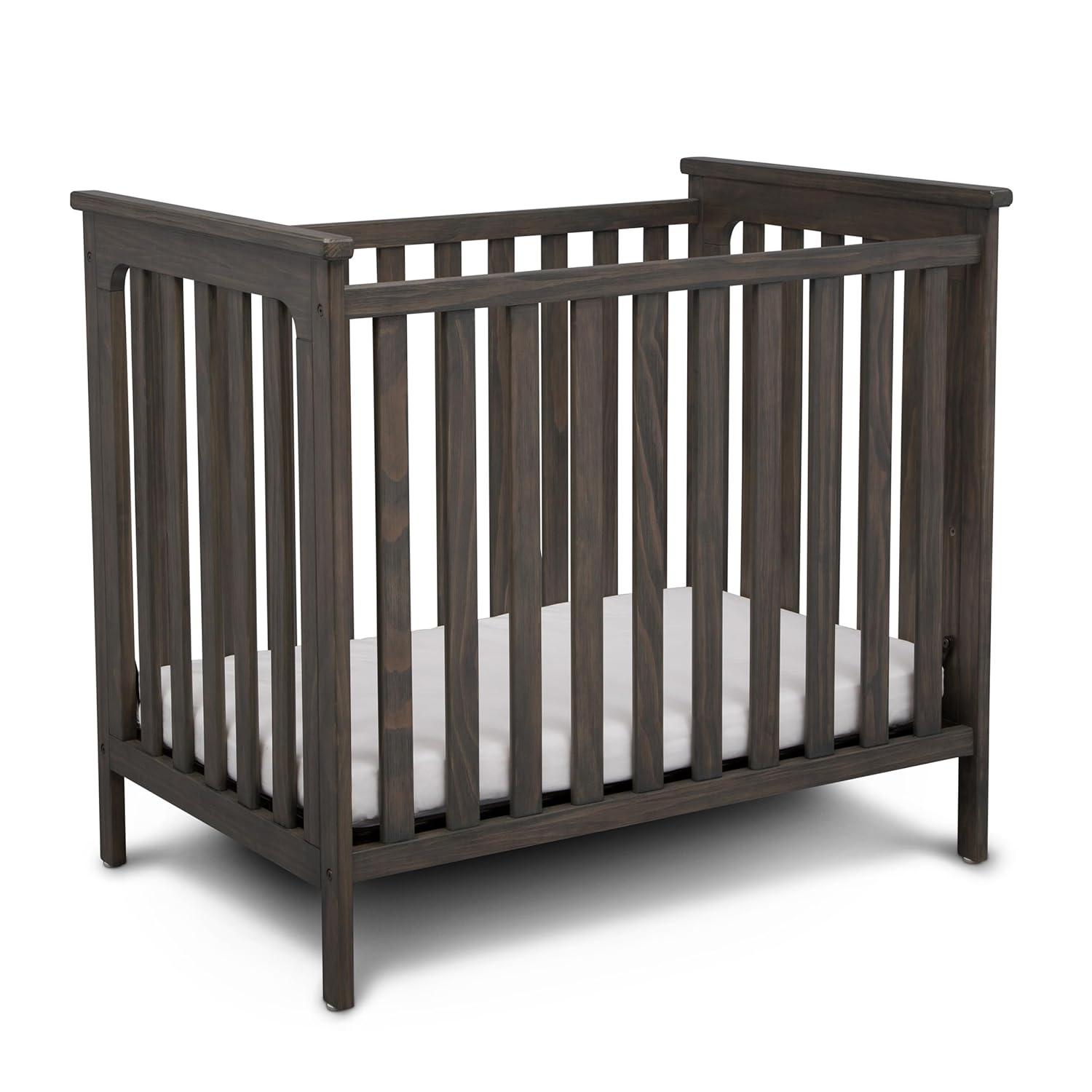 The Monterey Mini Crib with Mattress by Simmons Kids lets you maximize the function of your nursery, no matter its size. And just because this crib is designed for smaller spaces, doesn’t mean it lacks personality, its rustic finish showcases a textured grain to achieve a natural weathered feel and look for farmhouse appeal. Designed with a simplified profile and compact footprint, this mini crib brings easy, versatile style while saving needed floor space. Like most Delta Children cribs, the Monterey Mini grows with your little one—the adjustable height mattress support has two positions, start at the highest position for your newborn, and lower as your child begins to sit or stand. The Monterey Mini Crib with Mattress by Simmons Kids includes a 2.75-inch thick mattress, and is available in Rustic Grey and Rustic White. To complete your nursery, pair this crib with other items in the Monterey Collection. Given its handmade nature, variations in the hand-applied finish and wood grain are to be expected and celebrated. Plus, it’s GREENGUARD Gold Certified, which means it’s built to contribute to cleaner air for a healthy home.