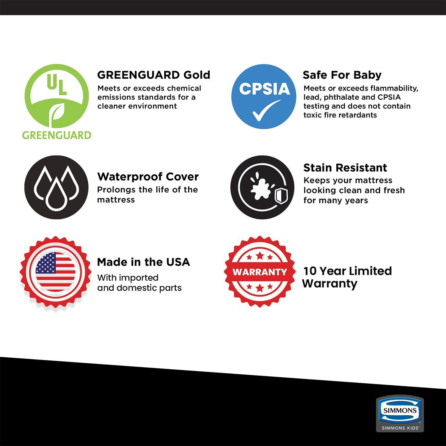 SAFETY CERTIFICATIONS: GREENGUARD Gold Certified: recognizes products with low chemical emissions, contributing to Healthier environments | Meets or exceeds flammability, lead, phthalate and CPSIA testing and does not contain toxic fire retardants