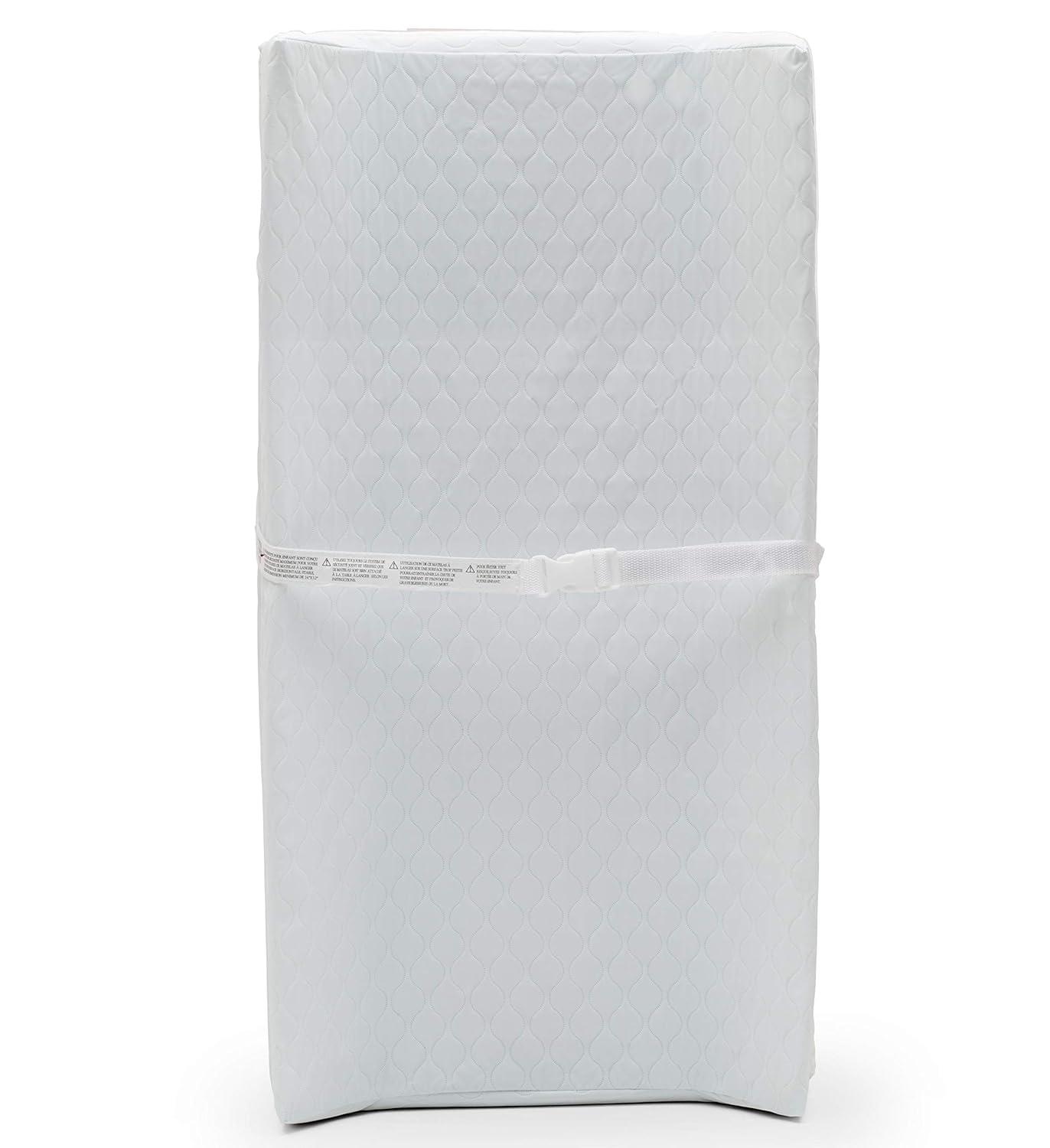 Simmons Kids Two Sided Contour Dressing Table Pad with Non-Skid Bottom is a changing pad that turns any flat surface into a changing surface. It has a restraining strap with easy release buckle that keeps baby safety in place. It's durable quilted cover locks out moisture and stains and keeps the baby dry, clean and comfortable.